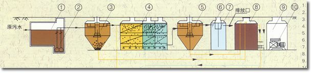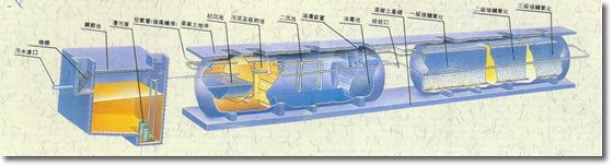(1)初沉池:地埋式生活污水處理設(shè)備的初沉池為豎流式沉淀池,污水在沉淀池的上升流速為0.6-0.7毫米/秒,沉淀下來(lái)的污泥用空氣提至污泥池。(注:WSZ-A O.5-5m3/h不設(shè)初沉池)