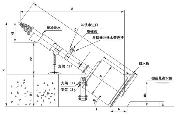 2、旋轉(zhuǎn)式細(xì)格柵機(jī)裝有沖洗裝置,具有自凈功能。